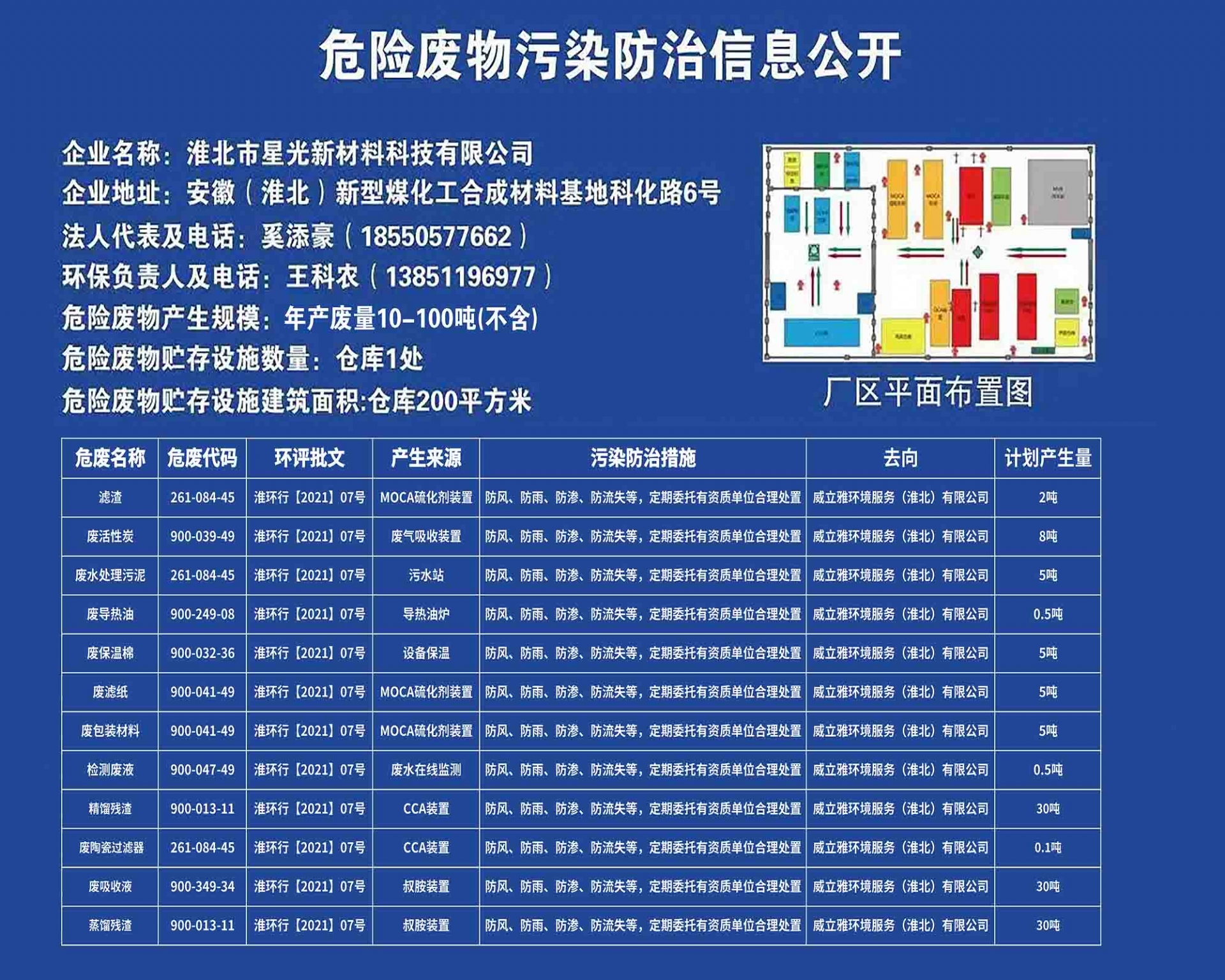 淮北市星光新材料科技有限公司10000t/a聚氨酯橡膠硫化劑MOCA、10000t/a鄰氯苯胺項(xiàng)目(一期)配套建設(shè)的環(huán)境保護(hù)設(shè)施調(diào)試時(shí)間延期公示根據(jù)關(guān)于發(fā)布《建設(shè)項(xiàng)目竣工環(huán)境保護(hù)驗(yàn)收暫行辦法》的公告(國環(huán)規(guī)評[2017]4號)的要求,我公司10000t/a聚氨酯橡膠硫化劑MOCA、10000t/a鄰氯苯胺項(xiàng)目(一期)配套建設(shè)的環(huán)境保護(hù)設(shè)施調(diào)試起止日期為2022年2月19日——2022年5月18日。